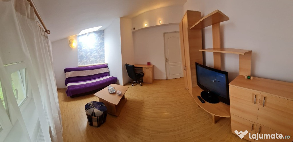 Va oferim spre inchiriere apartament de 2 camere confort 1 , decomandat, LIBER, ,cu CENTRALA proprie pe gaz, amplasat la etajul 2 Mansarda plus Pod, in CURTEA unei VILE, comuna cu alte 5 garsoniere tot inchiriate, insa cu INTRARE SEPARATA si posibilitatea de gratar in curte.Blocul este construit in 2015, ANVELOPAT, cu VEDERE PANORAMICA, orientare sudica, situat semistradal, pe strada Liniei, la intersectie cu strada Acvariului, se poate intra din Moinesti. Este la doar 10 minute de mers pe jos pana la METROU GORJULUI, pe Bld Iuliu Maniu, la 2 minute statia STB 137,138, scoala, gradinita 309 sau 5 minute tramvai 25, statia Frigocom pe Bld Timisoara, in zona LIDL, Megaimage, Penny, Profi, Kaufland, etc.