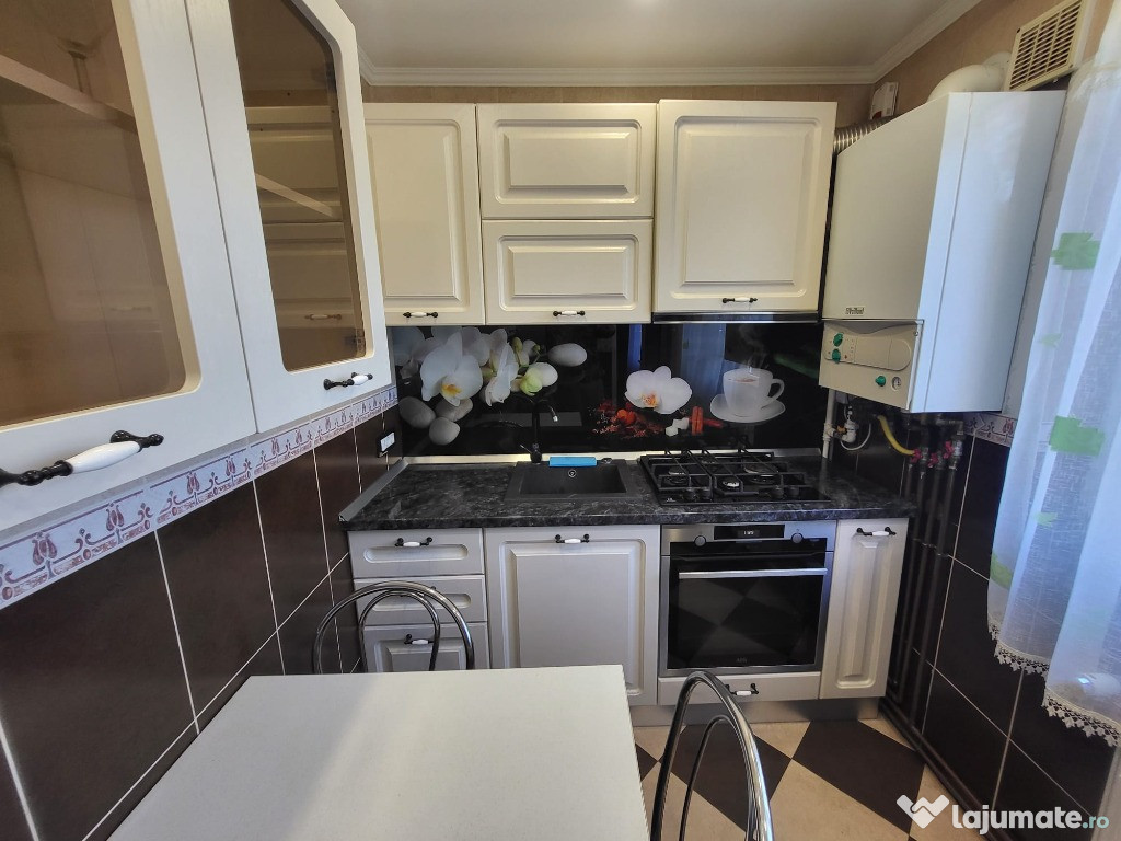 Apartamentul este complet mobilat si utilat cu: centrala termica, AC, 2 x TV, masina de splat, frigider, aragaz, hota.