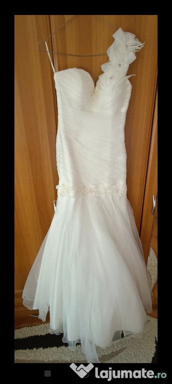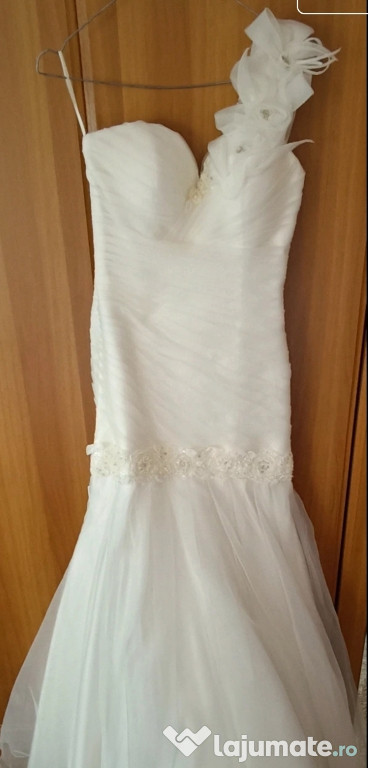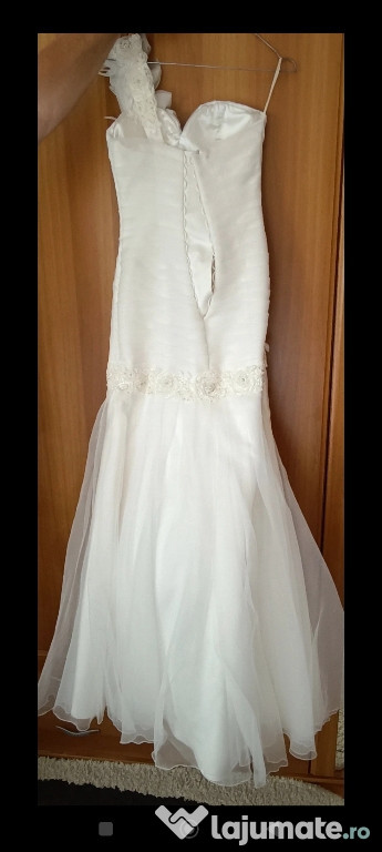 Se vinde rochie de mireasă tip sirenă sau trompetă, purtată o singură dată.Corsetul are un decolteu de tip inimă, o alegere clasică.