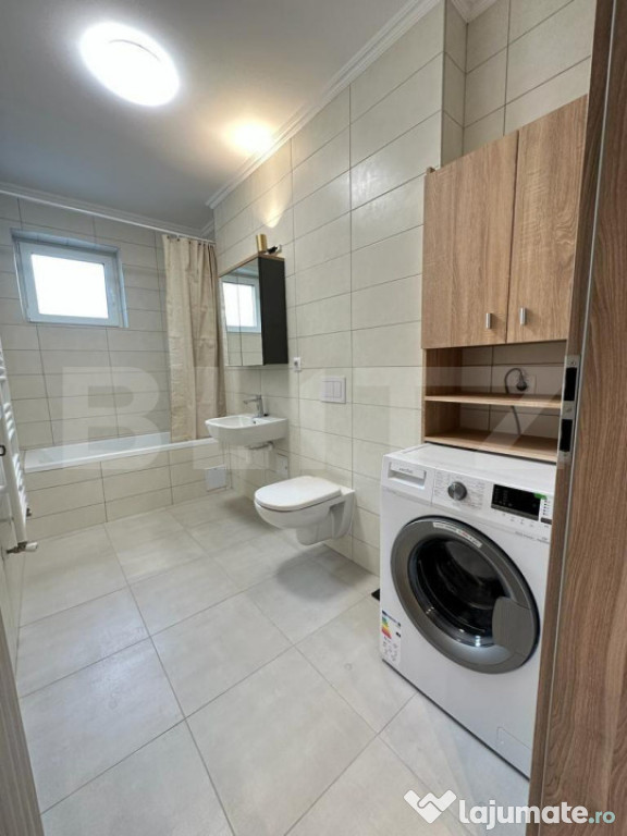 Baie Modernă: Baia este amenajată cu finisaje de înaltă calitate și dotată cu facilități moderne pentru a vă asigura confortul deplin.