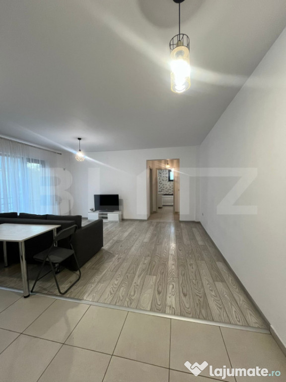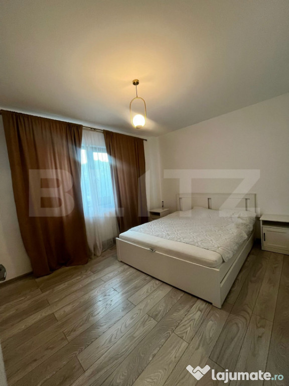 Blitz va propune spre cumparare un apartament de 2 camere semidecomandat, cu o suprafata de 55 mp, compus din: 1 dormitor, 1 baie si o bucatarie open space cu livingul. Apartamentul se afla la etajul 3 al unui imobil construit in 2021, fiind izolat termic la exterior. Imobilul se afla intr-o zona linistita, aproape de Kaufland si alte puncte de interes.Acesta beneficiaza de geamuri termopan, usa metalica de acces, parchet, gresie faianta. Apartamentul se vinde complet mobilat si utilat dupa cum apare in poze. Acesta dispune de parcare si boxa de depozitare incluse in pret.