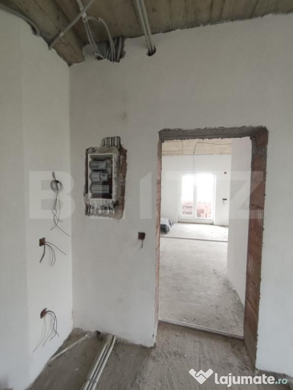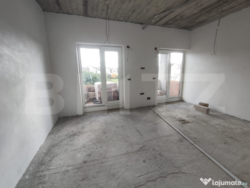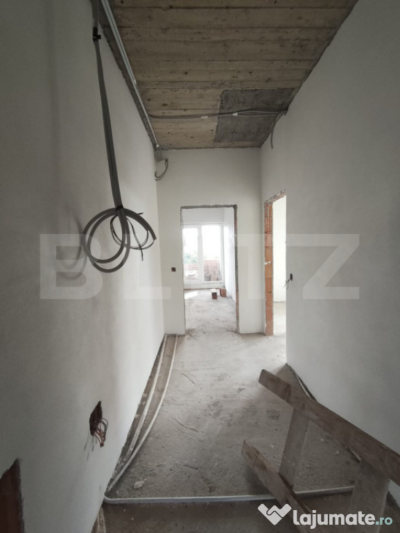 -Exterior la roșu, interior semifinisat (instalații trase, tencuieli, șape)