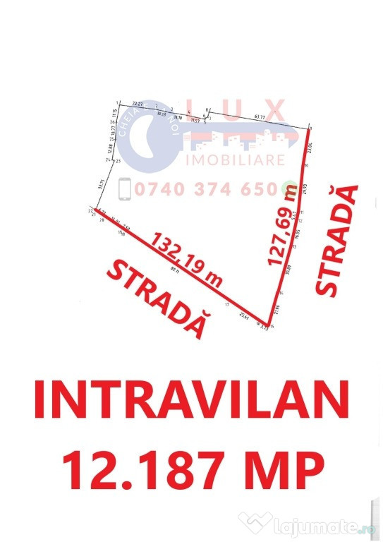 Agentia LUX Imobiliare va propune spre vanzare, teren INTRAVILAN amplasat in Zona Vărăriei, avand o suprafata totala de 12.187 mp cu DOUĂ FRONTURI STRADALE de 132,19 ml, respectiv de 127,69 ml.Datorită poziționarii si a deschiderii stradale, acesta poate avea destinație comercială cat si industriala: hala, spatiu comercial, spatiu productie, etc. De asemenea poate fi cumparat ca si INVESTITIE, zona fiind in continua dezvoltare!!!