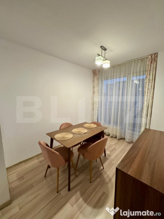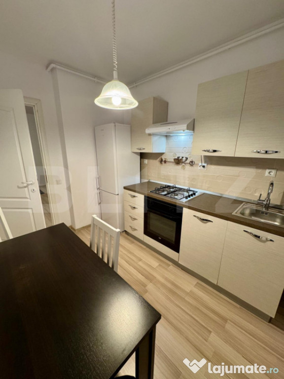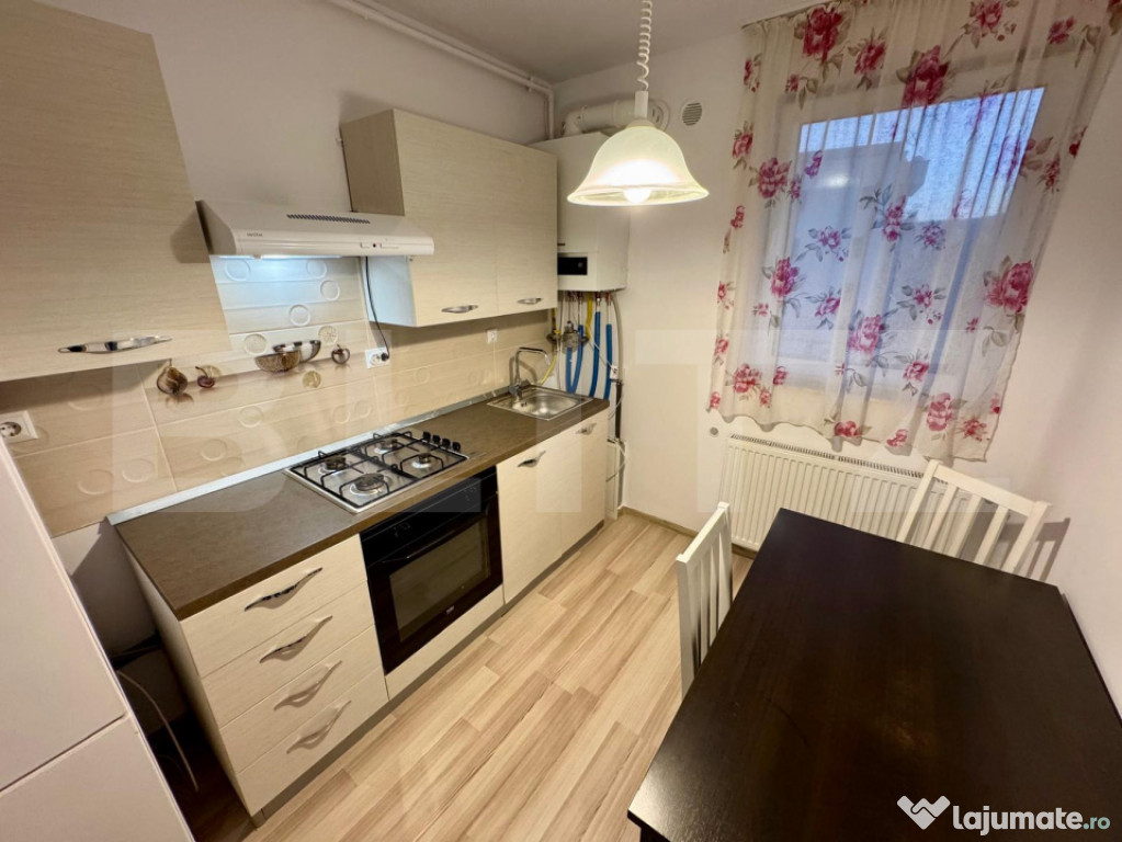 Apartamentul beneficiază de centrală termică proprie, geamuri termopan cu tâmplărie PVC și ușă metalică la intrare. Se închiriază complet mobilat și utilat.