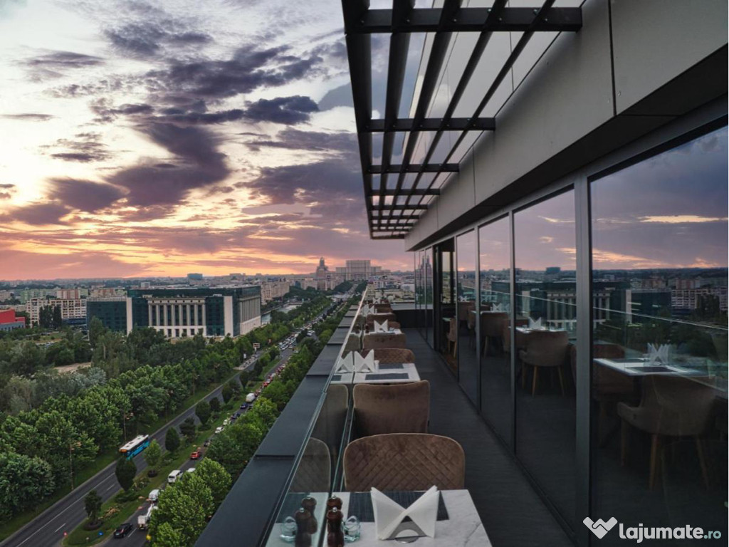 Vedere spectaculoasă către Bulevardul Unirii și Casa Poporului. Orientare vestică – vedere directă spre Casa Poporului și apus spectaculos, priveliștea perfectă pentru serile linistite când ciocnești un pahar de vin.
