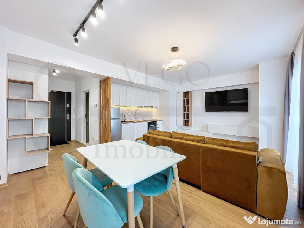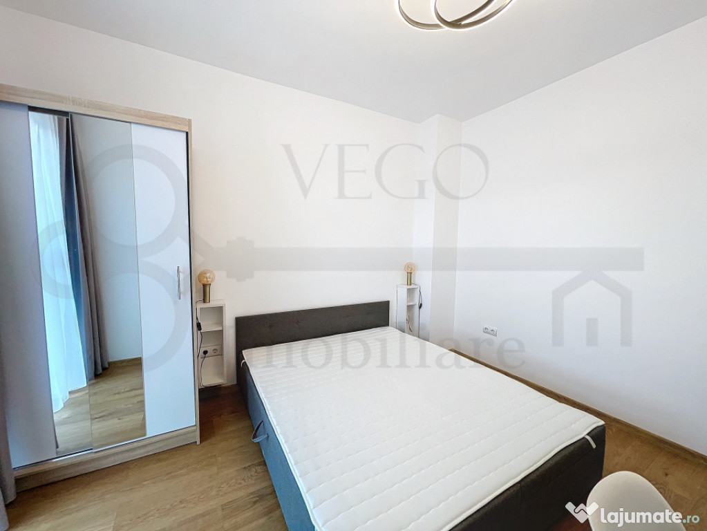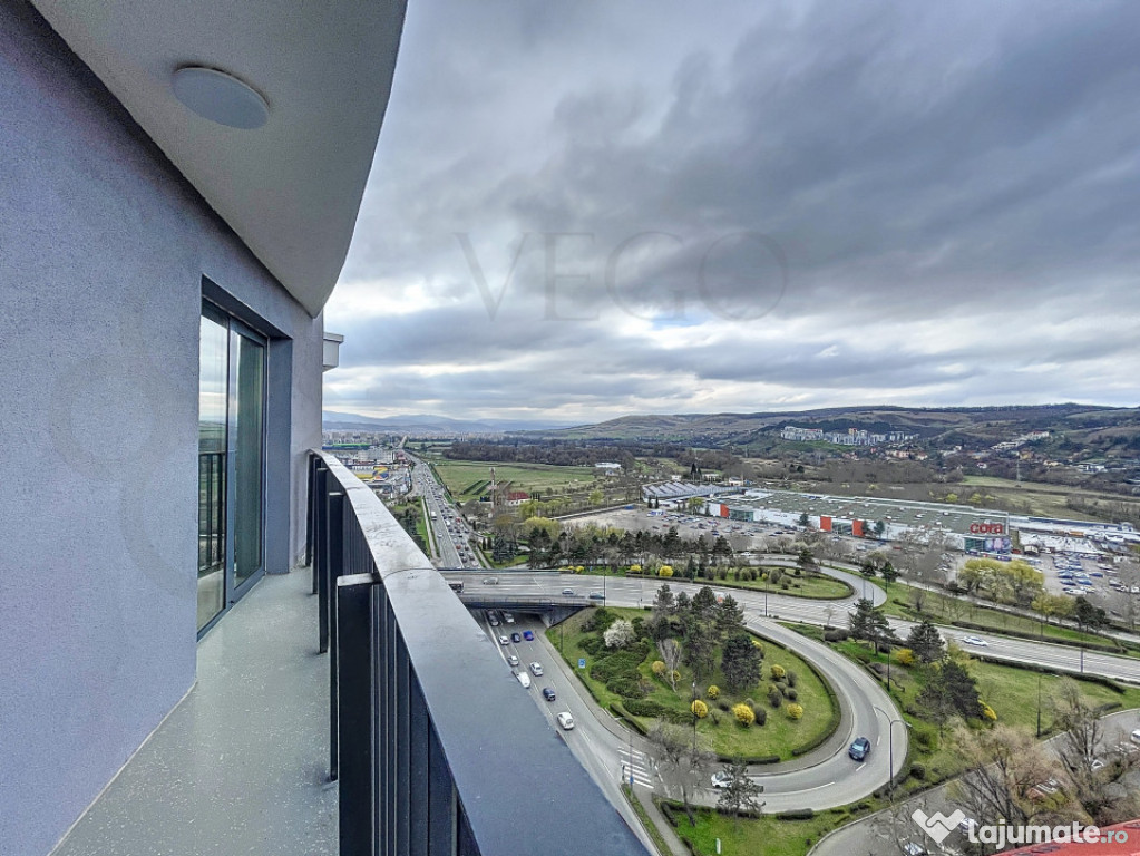 VEGO IMOBILIARE vă prezintă spre închiriere și vă stă la dispoziție cu acest apartament de 2 camere, poziționat la etajul 12 al unui imobil nou construit, dispus pe 24 niveluri, situat în ansamblul rezidențial West City Tower, o construcție unică și emblematică a municipiului Cluj-Napoca, oferind în același timp acces facil asupra multor puncte de interes, situat la o distanță de câteva minute de mijloacele de transport în comun, de asemenea, în apropiere se regăsesc magazine, farmacii, bănci, parcuri, spații verzi și multe alte obiective importante.Locuința se desfășoară pe o suprafață utilă de 54 mp + un balcon de aproximativ 6 mp, finisajele sunt moderne, de înaltă calitate, se închiriază complet mobilată și utilată, inclusiv cu mașină de spălat vase, TV Smart 4K 164 cm, uscător rufe, cuptor electric cu plită inducție, în rândul dotărilor menționăm pardoseala cu parchet laminat, ferestre termoizolante cu tâmplărie PVC, ușă antiefracție la intrare și uși interioare din lemn, iar confortul termic este oferit de centrala termică a imobilului cu sistem de încălzire în pardoseală.