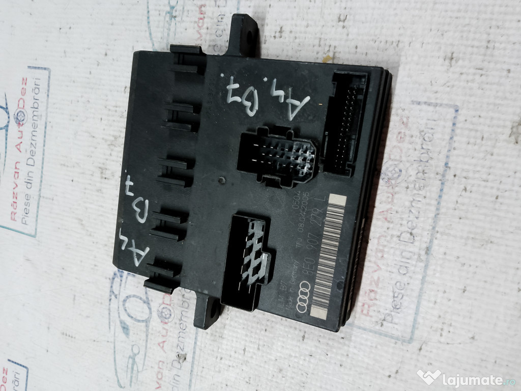 Calculator confort Audi A4 B7 2009. Cod(uri): 8E0907279L. Piesele comercializate sunt originale, provenite din dezmembrari. Dispunem de o gama larga de piese multimarca. Piesele sunt verificate inainte de a fi puse spre vanzare. In caz de neconformitate piesa se poate returna. Va rugam sa verificati disponibilitatea pieselor telefonic. Trimitem in tara prin curier.Marcă: Audi