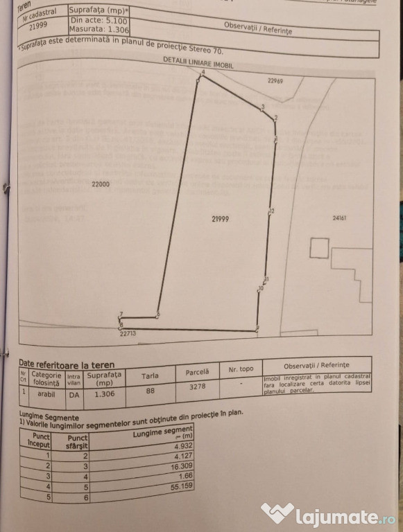3.794 mp – teren arabil extravilan Suprafață totală: 5.100 mp