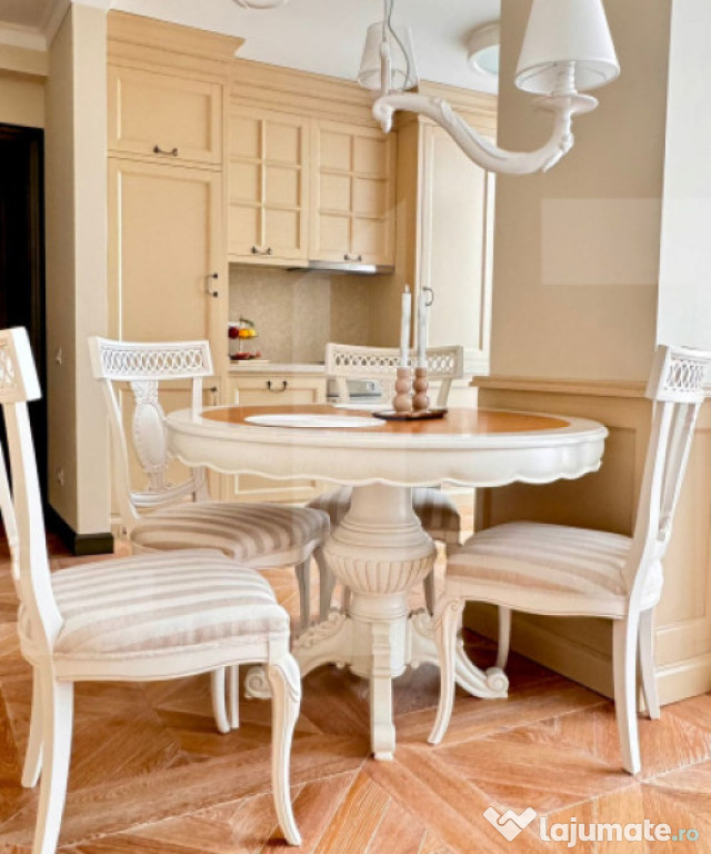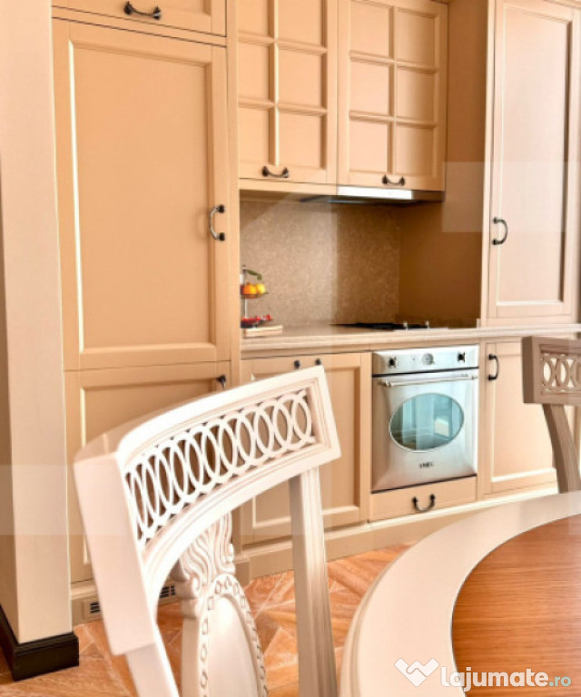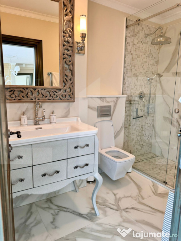 Tâmplăria, pardoselile și detaliile de execuție reflectă un standard ridicat de calitate, iar mobilierul realizat la comandă și electrocasnicele de top completează armonios un ambient sofisticat și contemporan.