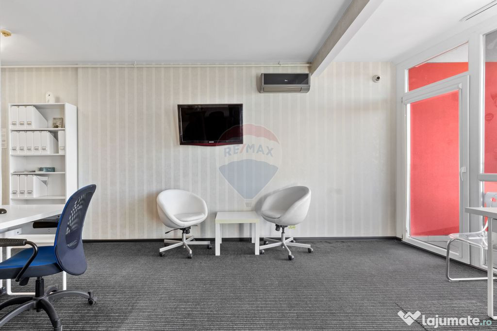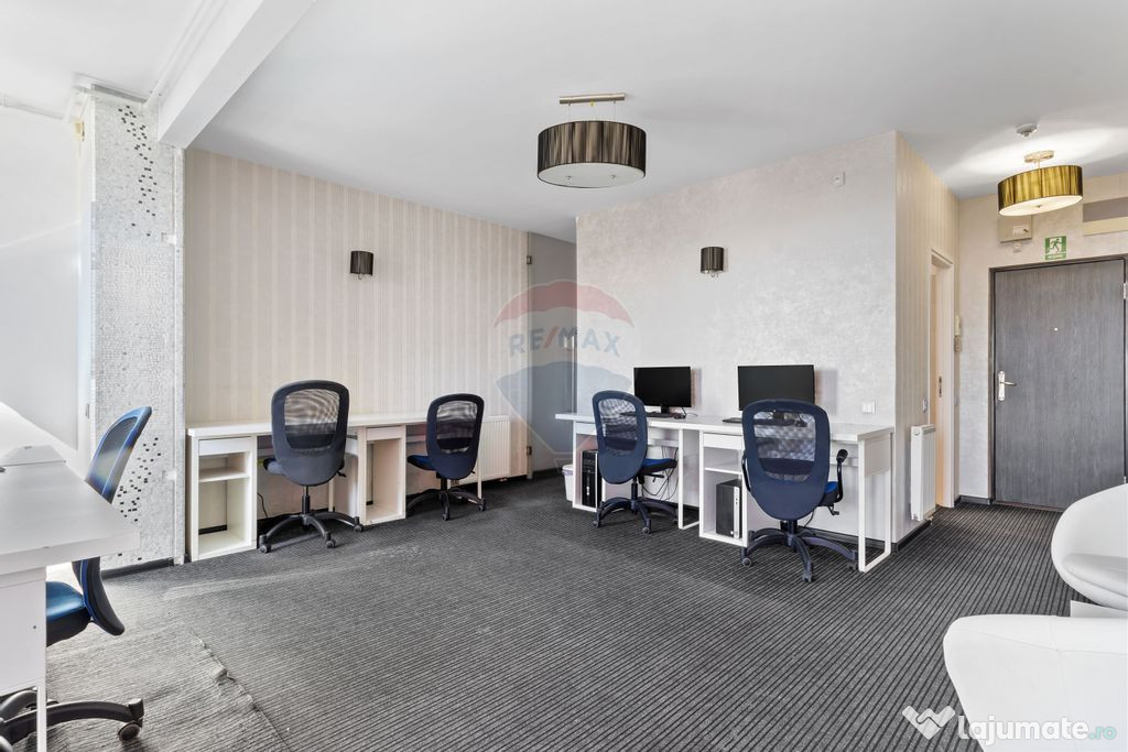 Proprietatea este mobilată și amenajată pentru spațiu de birouri, reprezentând o alegere excelentă atât pentru investiție, cât și pentru cei care își doresc un spațiu modern și luminos pentru activitate profesională.