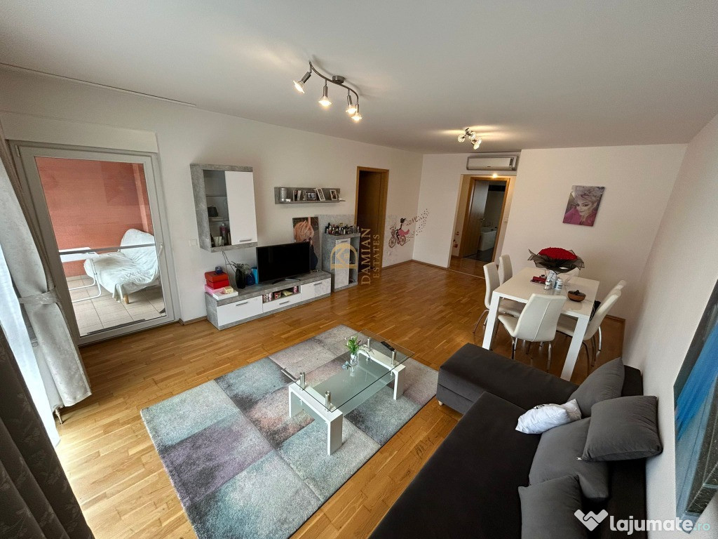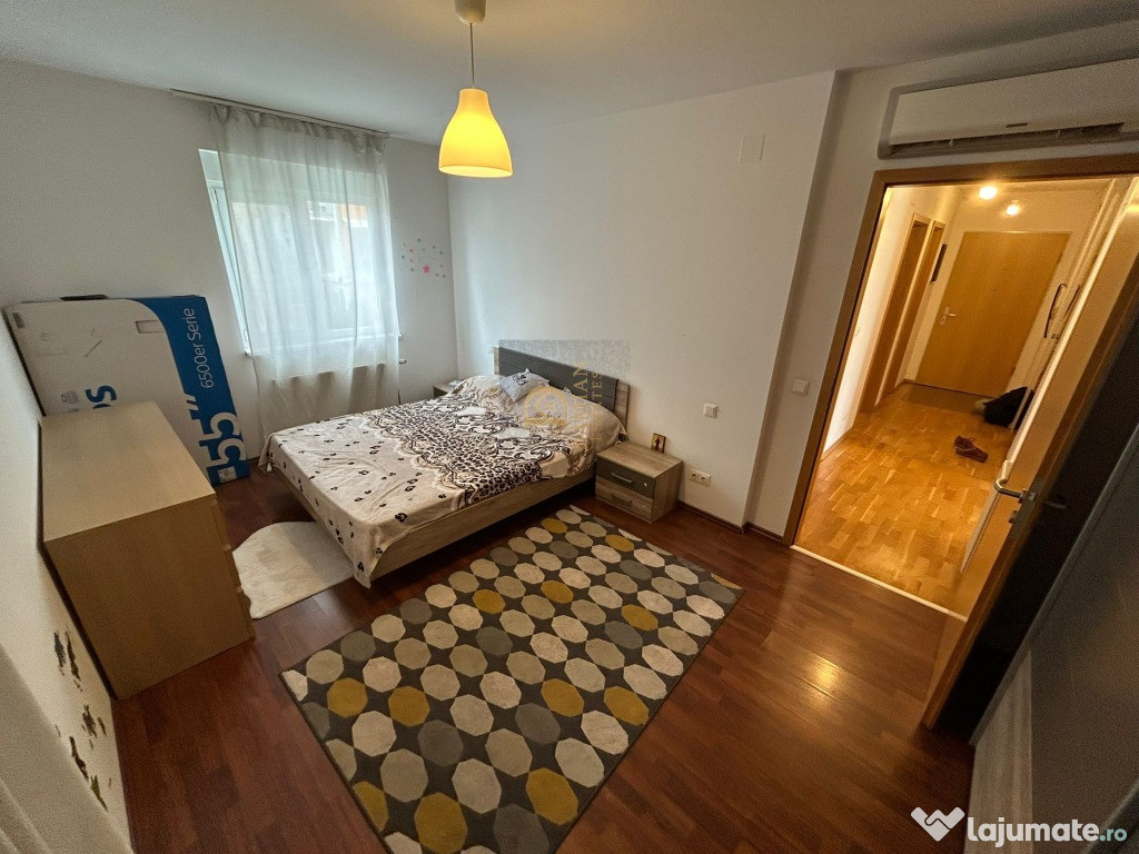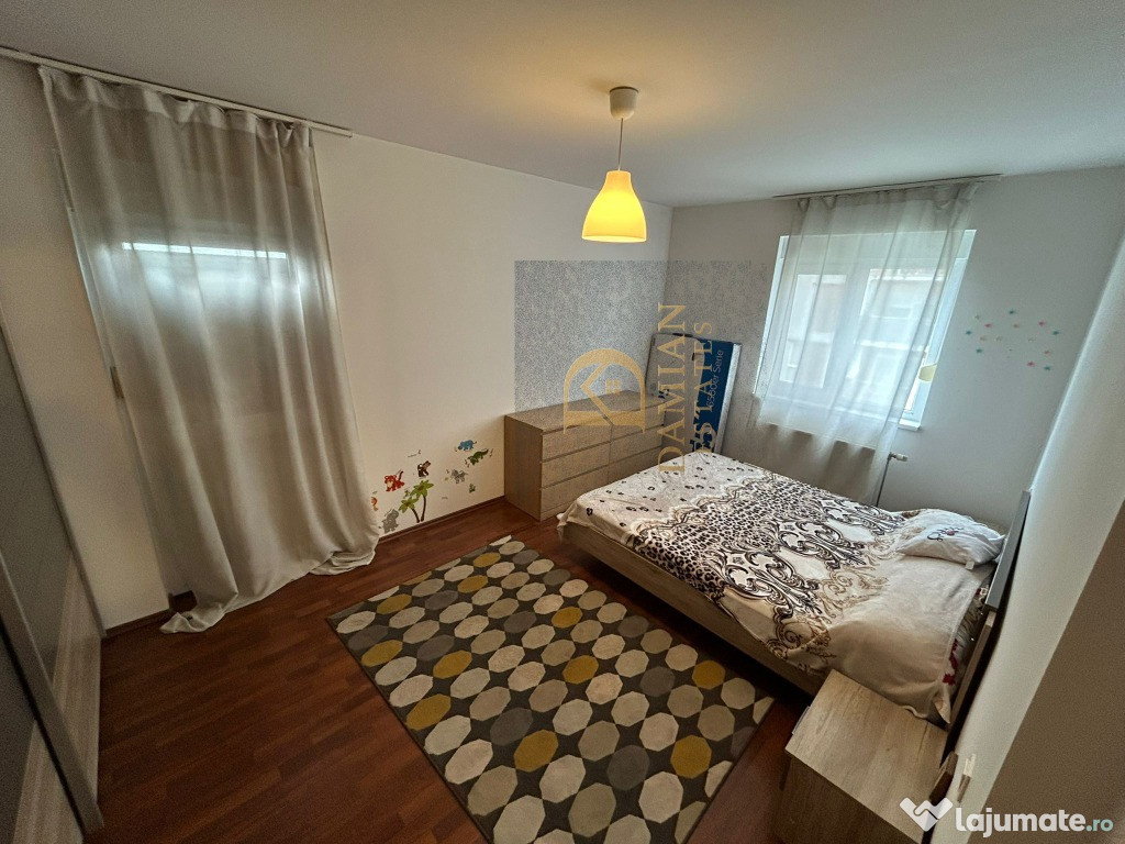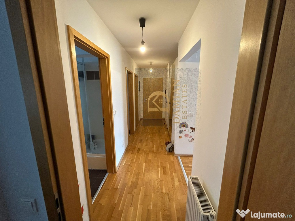 Acest apartament de 3 camere, cu o suprafață utilă de 80,2 mp la care se adaugă un balcon de 9,8 mp, o boxă la demisol de 7,5 mp și un loc de parcare tot la demisol, este o locuință pregătită să ofere confort real, stabilitate și un stil de viață liniștit. Este un apartament foarte bine îngrijit, cu încăperi luminoase, care păstrează încă de la intrare senzația de spațiu curat și bine organizat.Locuința este complet mobilată, are centrală proprie, două aparate de aer condiționat, ferestre tripan și obloane, iar blocul este izolat termic și construit după 2010, ceea ce se traduce în consum redus și facturi mici. Este un apartament în care te poți muta imediat, fără costuri suplimentare sau renovări.