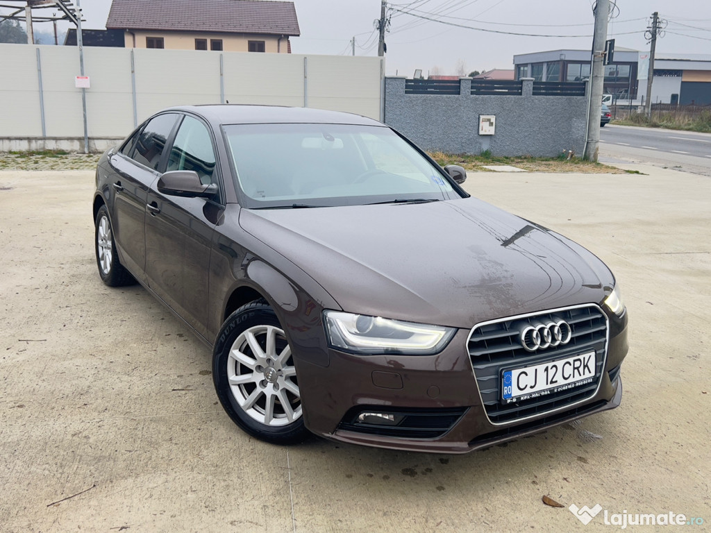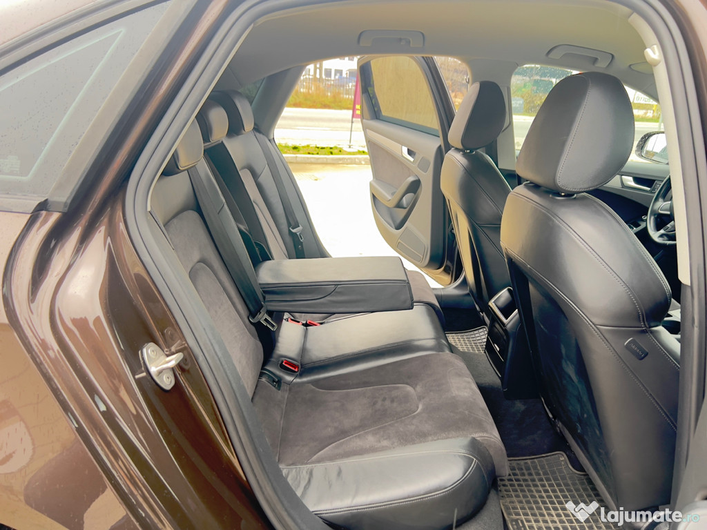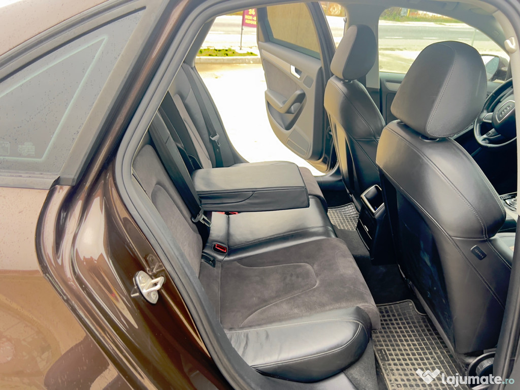 Audi A4 B8. Facelift 2.0 TDI 177 CP. 6+1 rapoarte, an 2013 EURO 5, km. 187000. culoare moka brown metalizat perlat, stare foarte buna de functionare, fara rugina, fara batai, toate consumabilele au fost schimbate recent, interior piele cu alcantara, foarte curat si ingrijit, inmatriculata in RO. proprietar in acte, cu toate actele la zi, itp valabil pana in iunie 2026, asigurare valabila pana in sectembrie 2026, ofer certificat FISCAL pe loc, inclusiv si impozitul este platit pe anul 2025, accept orice test autorizat. DOTARI: abs, esp, srs, asr, aer conditionat climatronic bizonal functional, 14 aerbaguri, pilot automat, 4 geamuri electrice, incalzire scaune, calculator de bord, oglinzi electrice-incalzite, servo total, volan reglabil din piele ,faruri cu bi-xenon, lumina zi cu led, stopuri cu led, proiectoare ceata, spalatori faruri, inchidere centralizata, doua cheii, senzori parcare, torpedou refrigerat, cotiera fata-spate, leaving home-follow me home, scaune reglabile pe inaltime si rabatabile, sistem audio original, navigatie mare color, folii omologate, jante aluminiu cu anvelope noi de vara si jante cu anvelope de iarna noi. pret neg. (0743) 051 844