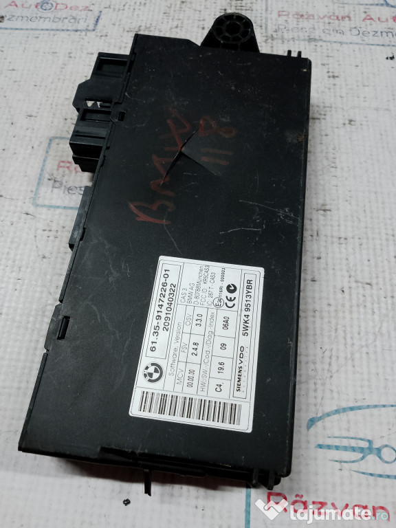 Calculator confort BMW 118 2009. Cod(uri): 9147226-01. Piesele comercializate sunt originale, provenite din dezmembrari. Dispunem de o gama larga de piese multimarca. Piesele sunt verificate inainte de a fi puse spre vanzare. In caz de neconformitate piesa se poate returna. Va rugam sa verificati disponibilitatea pieselor telefonic. Trimitem in tara prin curier.Marcă: BMW
