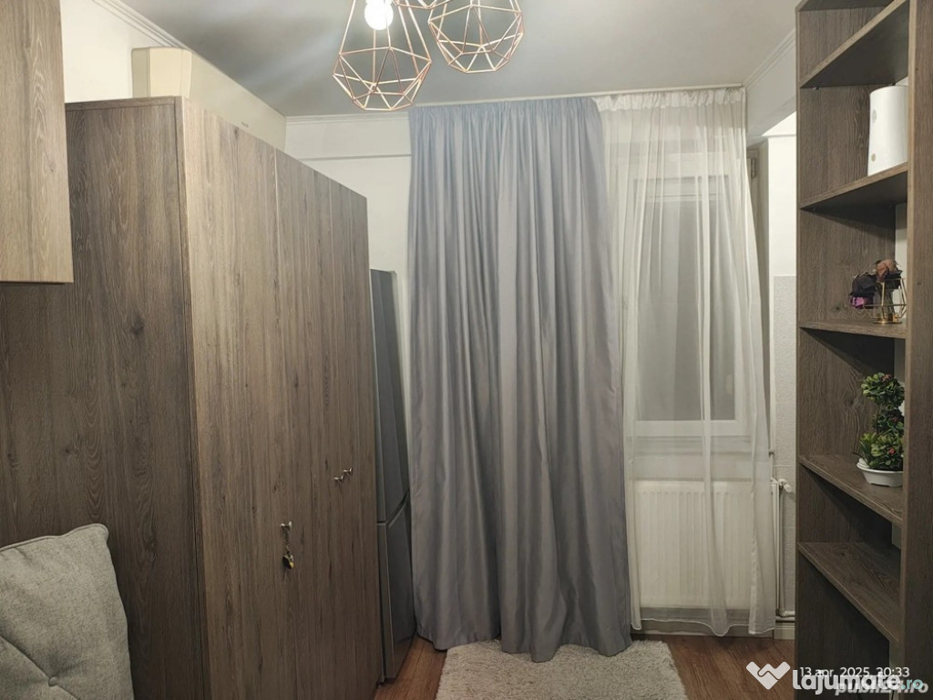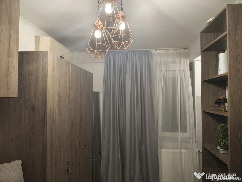 garsonieră 18,5 mp, in zona Constantin Brancoveanu la 8 min de mers pe jos sau o statie de autobuz f scurta de Statia de metrou Constantin Brancoveanu.Garsoniera se află la et 1 Intr un bloc cu 4 nivele, mansardat și reabilitat termic. Garsoniera este utilata și mobilata cu canapea extensibila dotată cu lada de depozitare, aragaz, hota, frigider, tv, cablu, internet, Ac, mașina de spalat, g, f, p, termopan dotat cu oblon de aluminiu și plasa de țânțari, ușă metalică, interfon. Garsoniera este contorizata, senzor gaz iar întreținerea este FFF mica. In imediata apropiere se afla magazine, bănci, farmacii, scoli, spital, statia de metrou Constantin Brâncoveanu, parcul Orășelul Copiilor, iar la 2 st de tramvai se afla mall Sun Plaza.