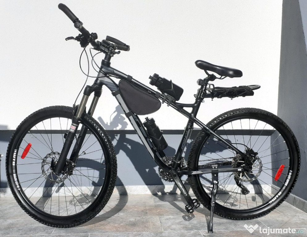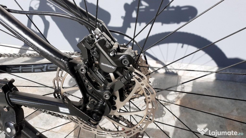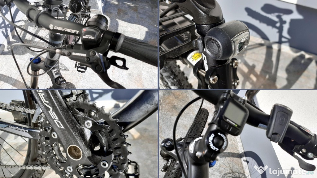 Bicicleta Mountain Bike (MTB) Devron Man Zerga D4.7 27.5", Magic Black, 45.7, M, foarte bine echipata, cadru din aluminiu, frana pe disc hidraulica, raport excelent dotare-pret (cumparata din Afisport cu 3550 Ron).Folosita de cateva ori (insumat, probabil 10-15 km), urme uzura zero (aspect evident, verificabil la cumparare) si depozitata in locuinta (mediu temperat, fara umiditate) . Se vinde din cauza nefolosirii si, recent, a unor probleme medicale (articulatii genunchi).