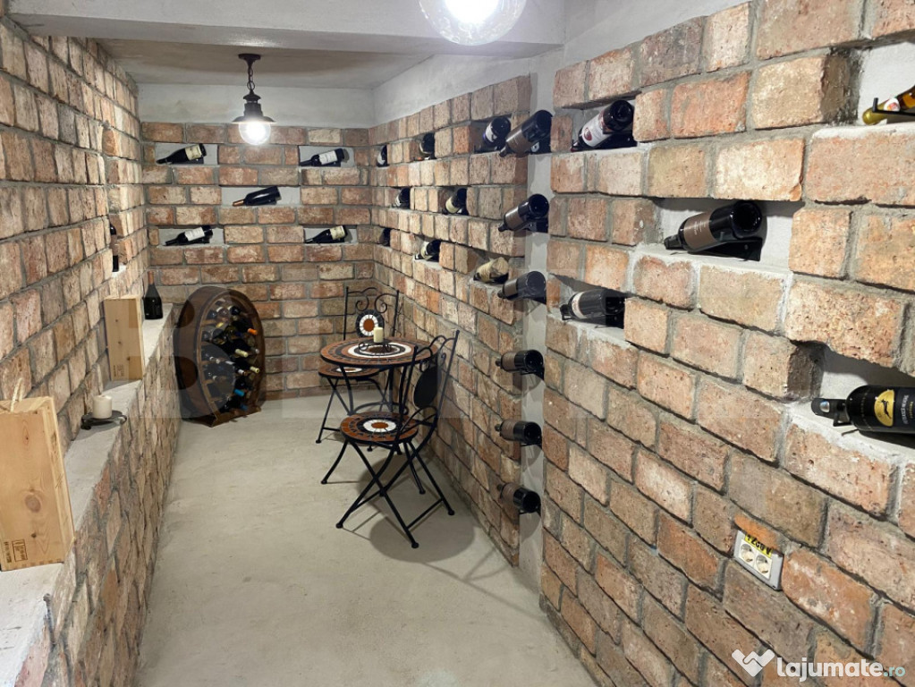 Curtea este atent amenajată cu vegetație decorativă, alei pavate cu piatră, foișor, barbeque grill și o cramă mică – spațiul ideal pentru relaxare.