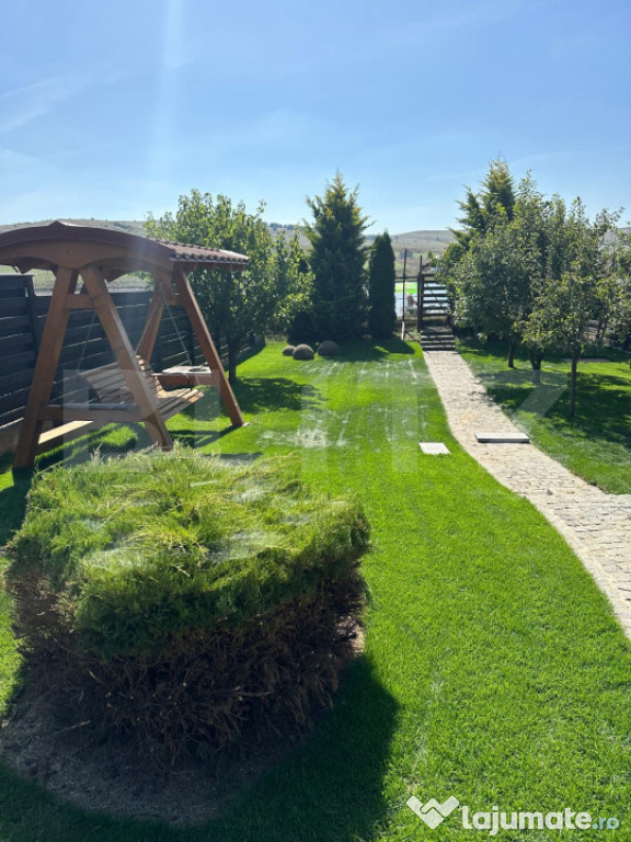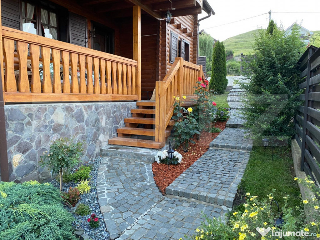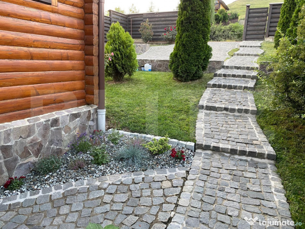 Alei pavate cu piatră, foișor cochet, barbeque grill perfect pentru seri cu prietenii;