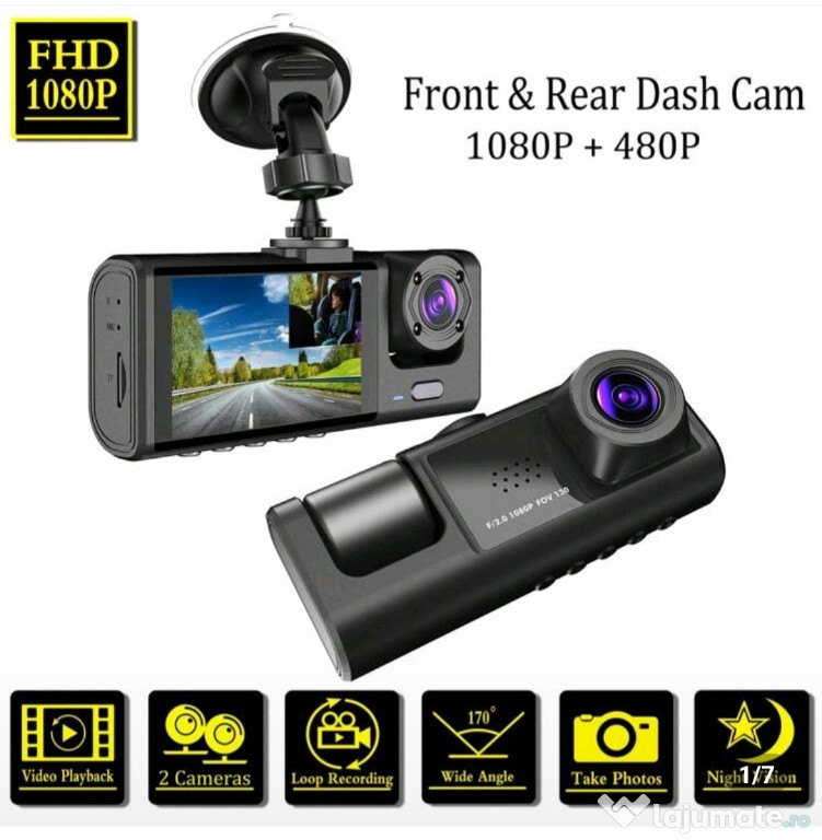 1 buc, Cameră de bord frontală și interioară, Cameră de bord cu 2 canale pentru mașini, Cameră de bord DVR 1080P FHD cu înregistrare în buclă, afișaj de 2 inchi, card SD nu este inclusAnuntul Cameră trafic auto este adaugat de pe LaJumate.ro.