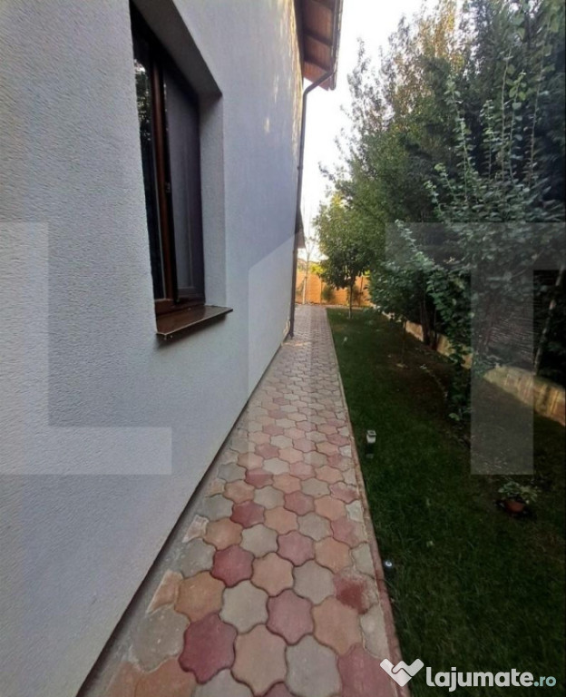 Are curte proprie amenajată cu aspersoare, 208 m², terasă generoasă de 20 m², plus beci sub terasă.