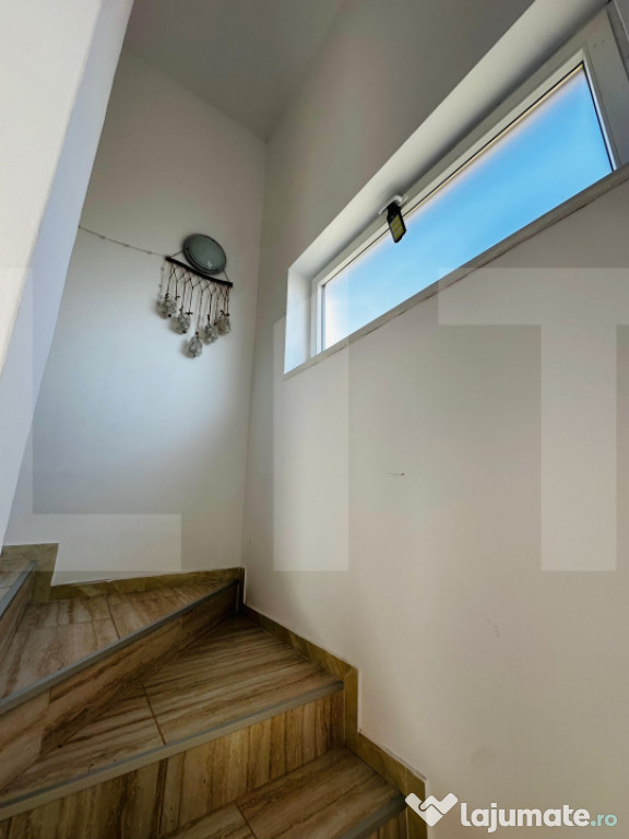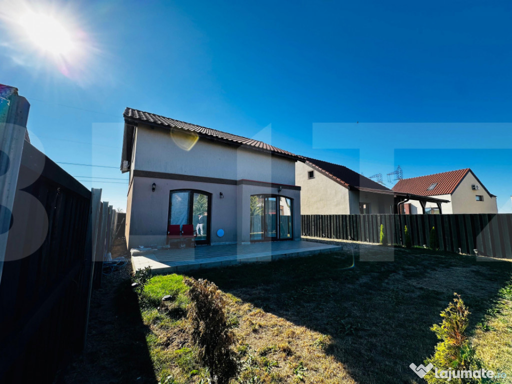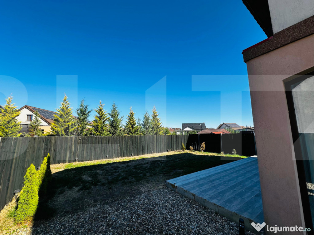 Casa este desfășurată pe o suprafață construită de 142 mp și este amplasată pe un teren de 250 mp, la care se adaugă o peluză de aproximativ 100 mp. Frontul stradal este de 12 metri liniari.