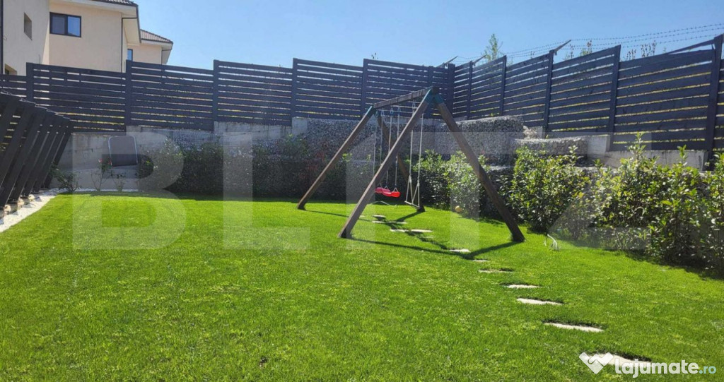 Curte amenajată frumos, cu terasă generoasă şi spaţii exterioare.