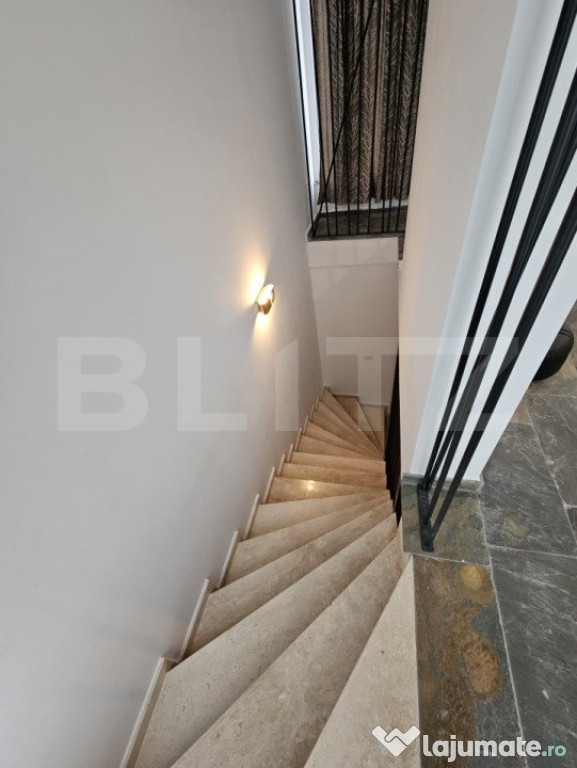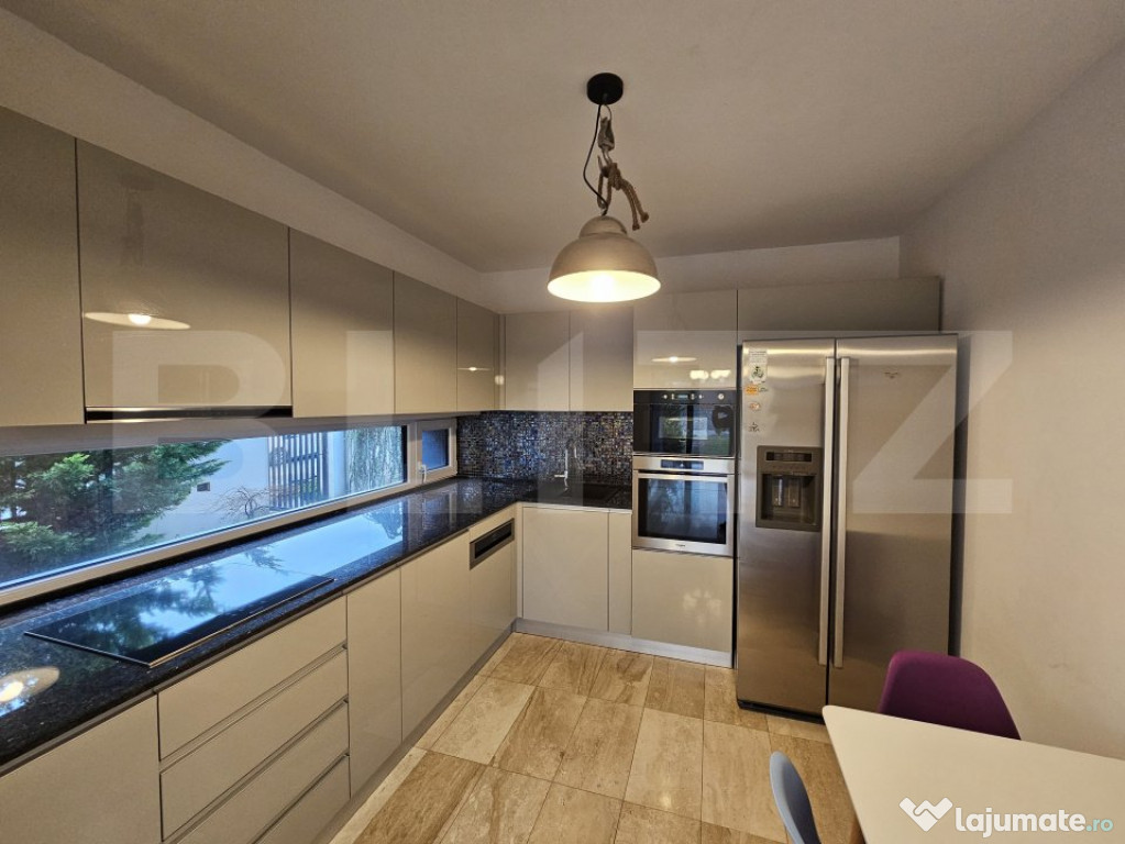 Casa este superfinisata si amenajata cu atentie la cele mai mici detalii. Suprafetele vitrate sunt mari, iar mobila si toate utilitatile sunt incluse in pret.