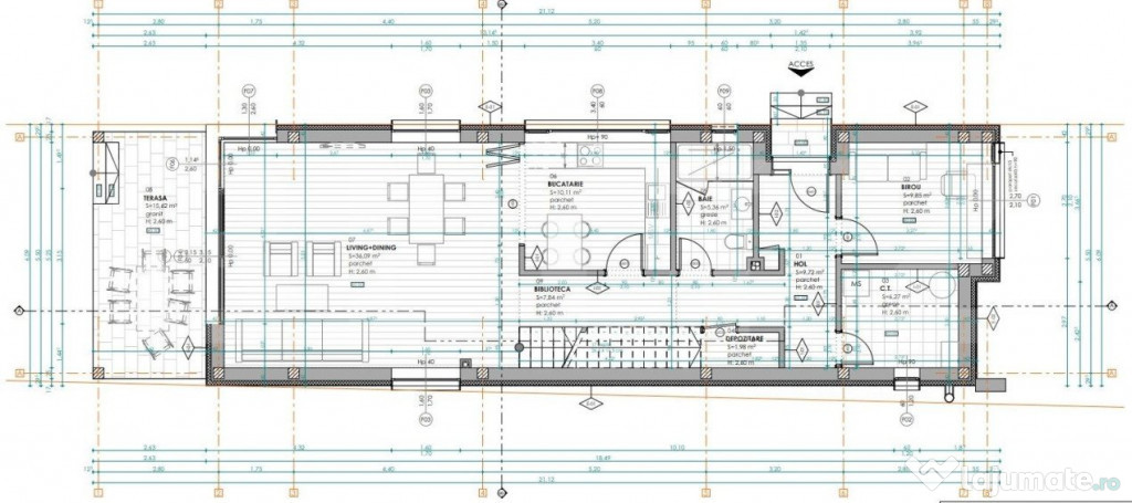 -Parter: living, bucatarie, birou, baie, camera tehnica