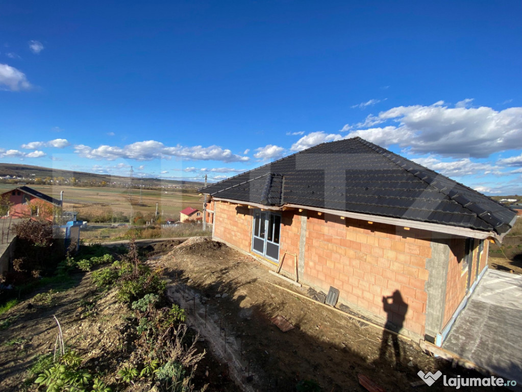 Casa moderna pe parter, semifinisata, teren 500 mp – Apahi