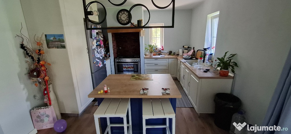 Vand casa P+M ( 150 mp utili ), constructie 2022, 5 camere, 2 bai, camera tehnica, semineu cu geam termorezistent ( diagonala 70cm ), teren 704 mp, magazie, terasa. Construita din caramida Porotherm 30, tamplarie Salamander, tigla bramac...etc.Pentru mai multe detalii contactati-ma telefonic.