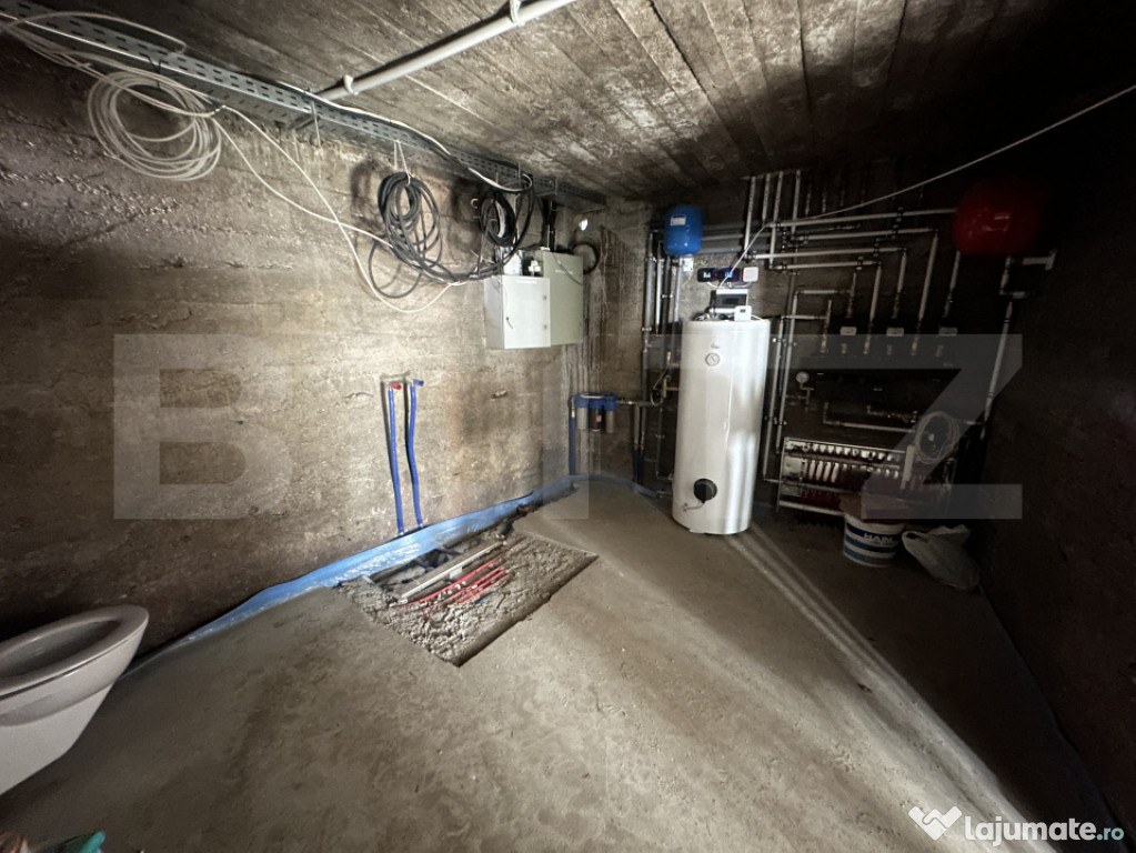 Demisolul este compus din 3 încăperi spațioase, o baie mare și o cameră tehnică în care este amplasat sistemul de încălzire. Încălzirea se realizează prin pardoseală în întreaga casă, oferind confort termic sporit. Demisolul este semifinisat, fiind ușor de personalizat în funcție de nevoile viitorului proprietar.