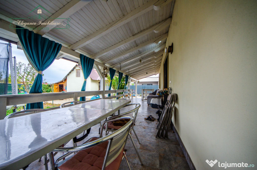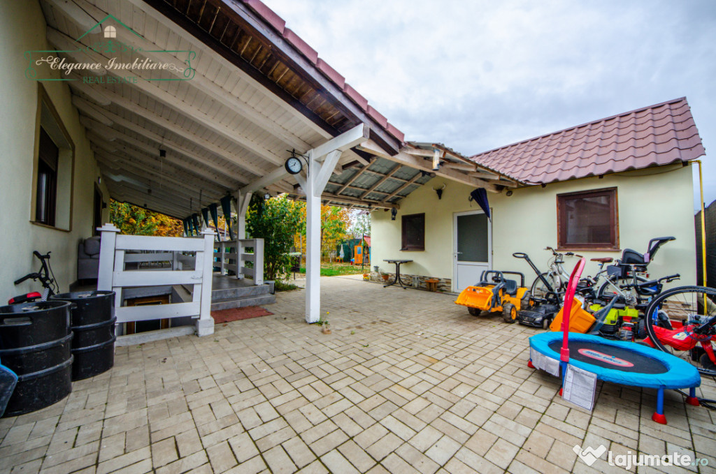 Pe lângă corpul principal, proprietatea include o anexă în curte care este compusă dintr-o cameră, bucătărie, baie și cameră tehnică, totalizând 4 camere pentru întreaga proprietate. Curtea are o suprafață de 414 mp și este amenajată cu o terasă acoperită. Proprietatea este racordată la toate utilitățile: apă, canalizare, gaz, curent electric și fibră optică.
