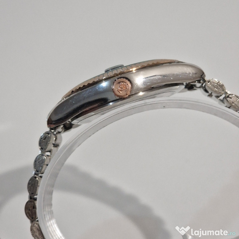 Carcasă: oțel inoxidabil cu bezel auriu zimțat