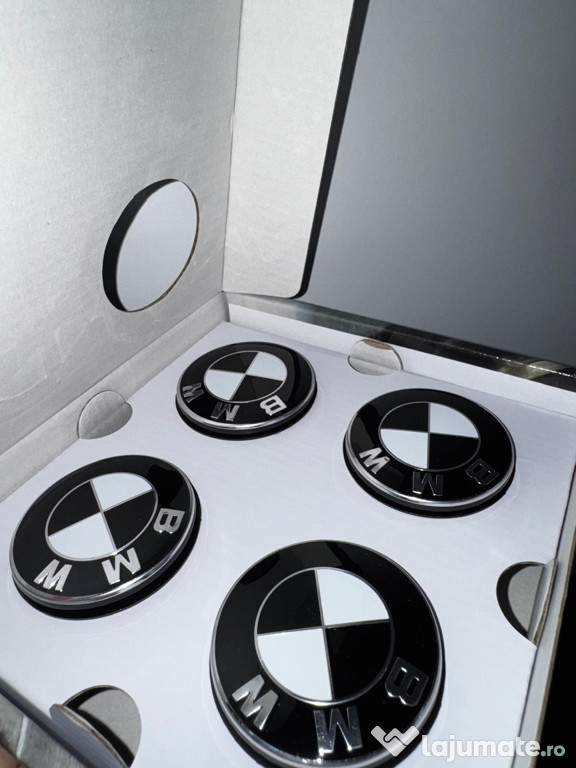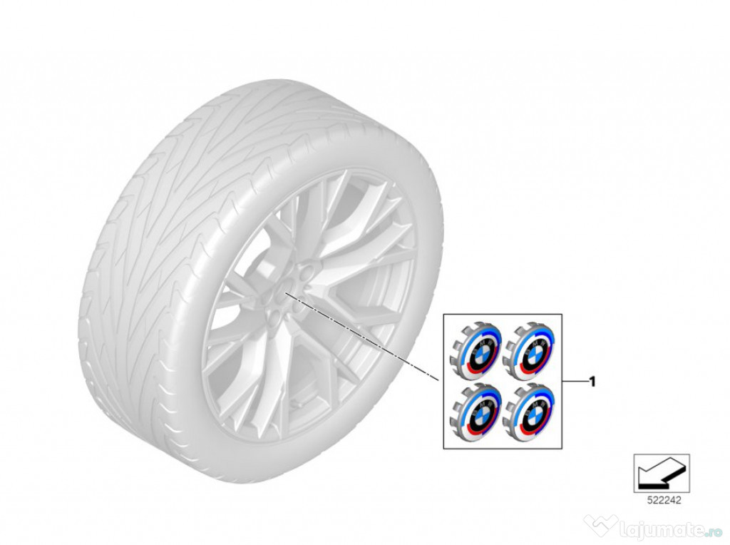 Setul se potrivește cu toate jantele BMW din aliaj ușor care au un model al prezoanelor 5x112.Capac de butuc fix, cu sigla BMW.