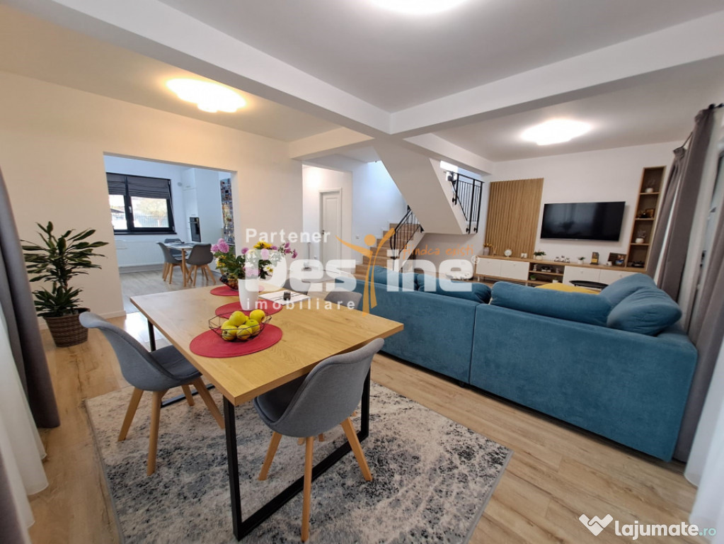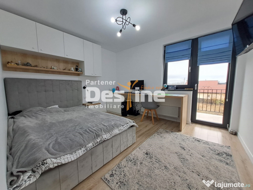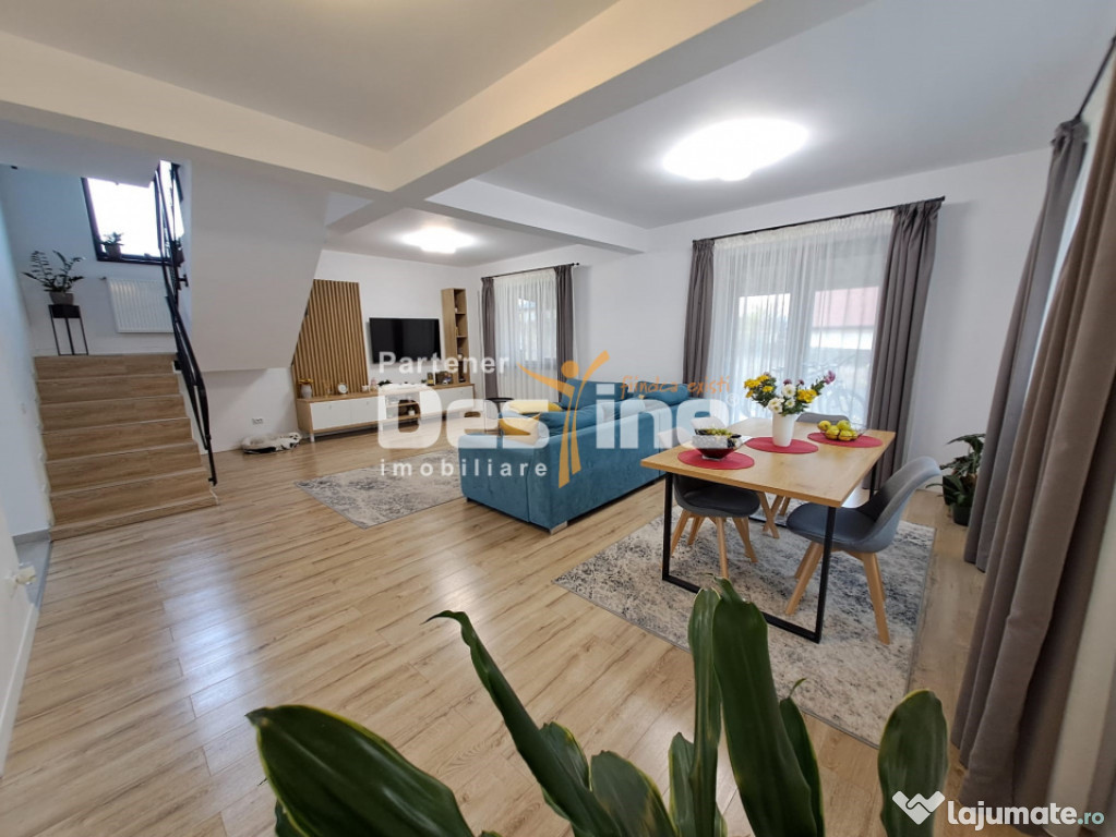 DESTINE IMOBILIARE vă oferă spre vânzare o CASĂ INDIVIDUALĂ cu regim de înălțime P+1+pod, edificată în anul 2021, situată la drum asfaltat, cu toate utilitățile. Proprietatea se vinde complet mobilată și utilată, toate piesele de mobilier fiind realizate pe comandă din materiale de calitate superioară.Caracteristici principale: