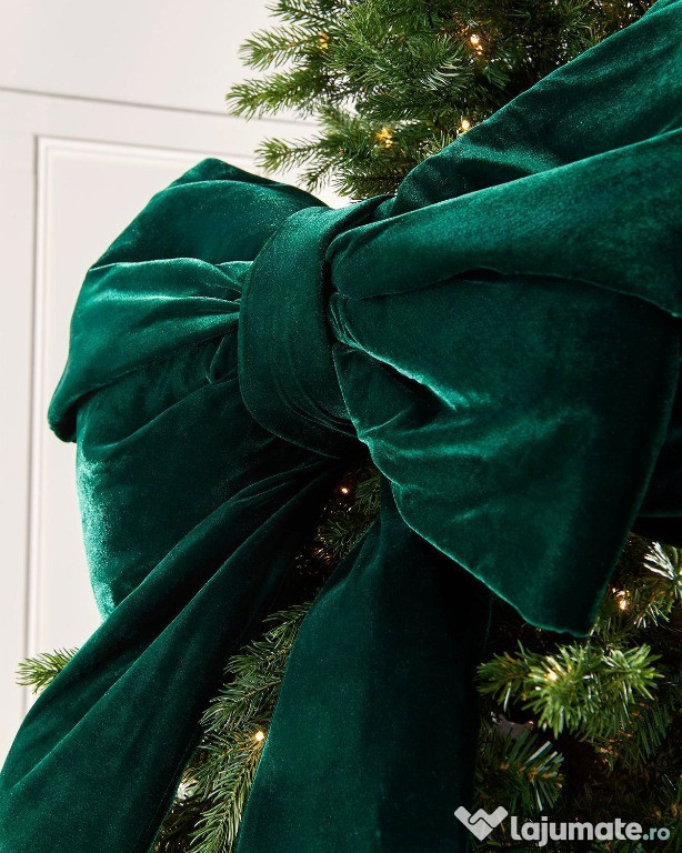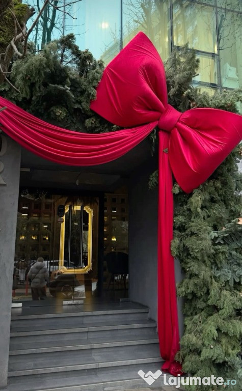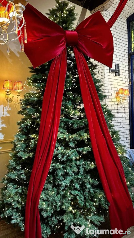 Decorațiuni de Crăciun elegante și festive pentru evenimente, cu panglici roșii mari și un fundal albastru-verde. Aceste decorațiuni vor aduce o notă de sărbătoare și eleganță în orice spațiu.Pentru mai multe detalii va stam la dispozitie