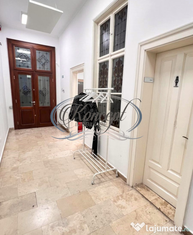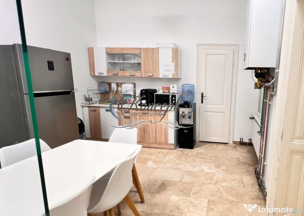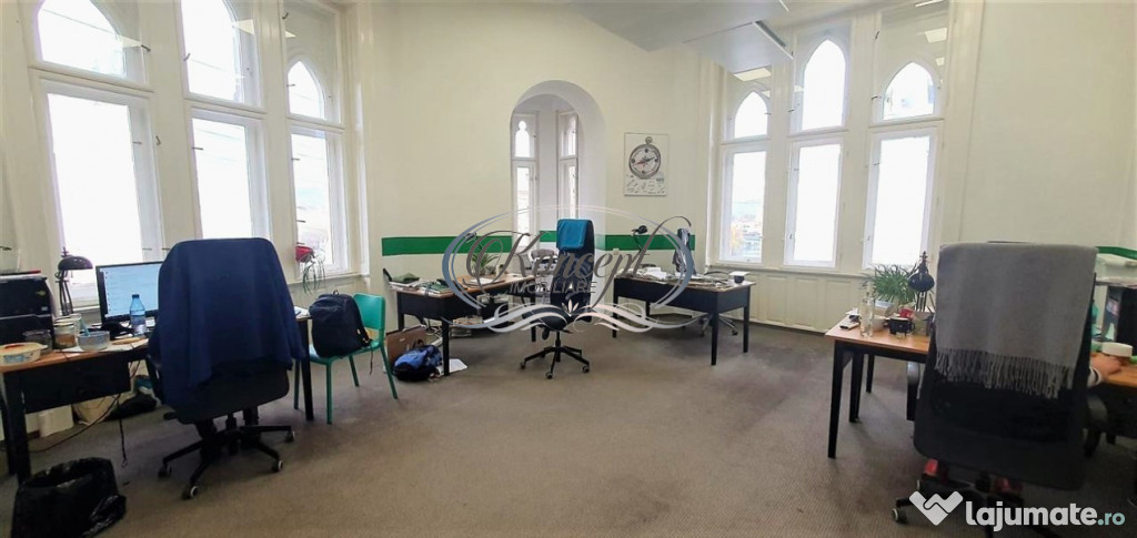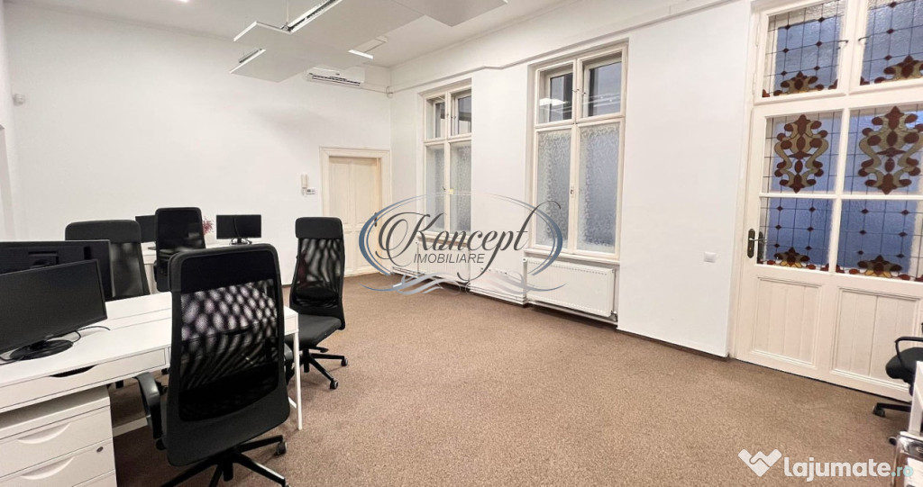 Koncept Imobiliare ofera spre inchiriere un spatiu de birouri situat ultracentral, pe strada Regele Ferdinand, una dintre cele mai prestigioase artere ale orasului. Pozitionarea excelenta in inima Clujului asigura acces facil la mijloace de transport in comun, institutii bancare, restaurante, servicii administrative si zone comerciale, fiind alegerea ideala pentru firme care cauta vizibilitate si accesibilitate maxima. Spatiul se afla la etajul 2 al unei cladiri istorice cu valoare arhitecturala, avand o suprafata utila de 230 mp si tavane inalte, care accentueaza senzatia de spatiu si lumina. Configuratia actuala include 4 incaperi generoase, hol de acces, bucatarie, doua bai si balcon cu panorama urbana. Acestea permit amenajarea eficienta pentru birouri individuale, sali de lucru colaborative sau spatii multifunctionale. Dotarile includ sistem de incalzire cu centrala termica proprie si convectoare, sistem de alarma si senzori de fum, oferind siguranta si confort. Fatada cladirii si interiorul elegant adauga valoare de reprezentare oricarui brand sau activitate profesionala. Este o solutie potrivita pentru firme de consultanta, cabinete profesionale sau birouri executive care doresc o prezenta consolidata intr-o locatie premium. Pentru informatii complete, programarea unei vizionari sau pentru a afla oferta noastra completa va stam la dispozitie telefonic, prin e-mail sau la sediul agentiei noastre, pe str. Aviator Badescu, nr. 19, Cluj-Napoca.Id intern: P16384