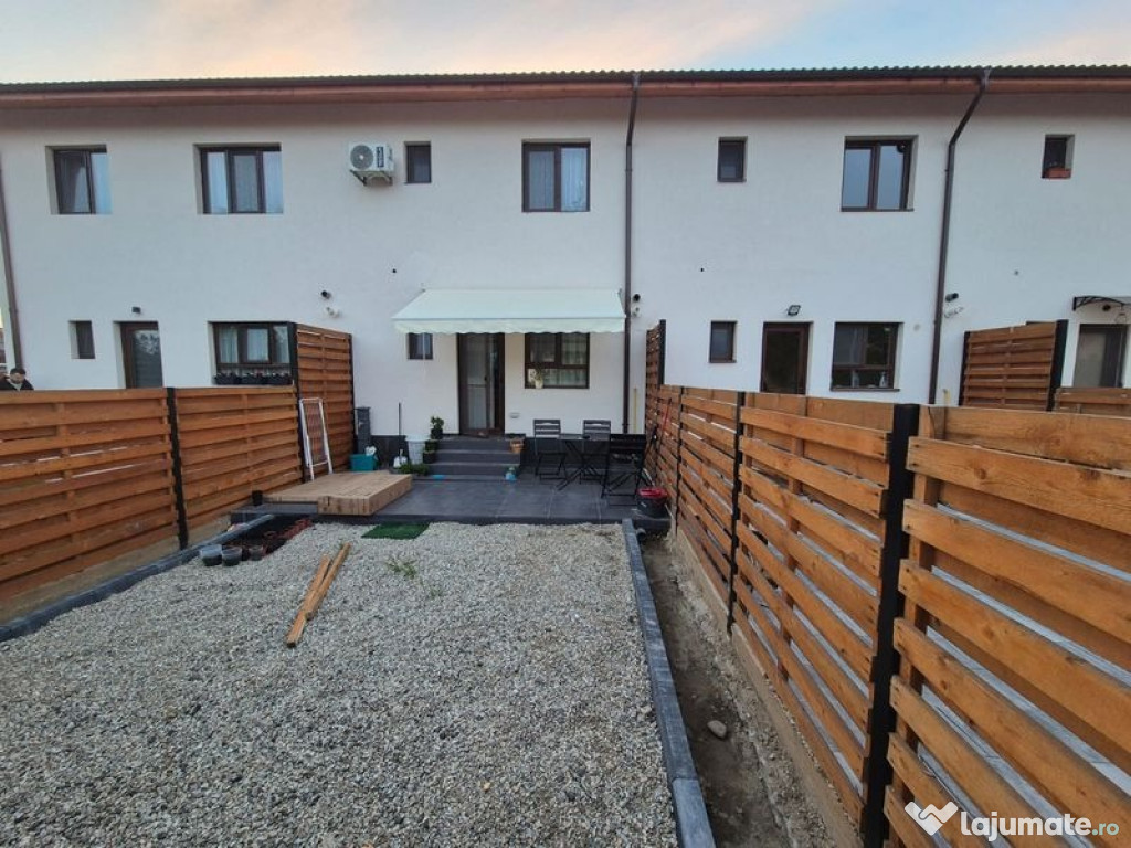 Casă P+1 de 100 mp utili: parter-living cu bucătărie, baie, hol, spații de depozitare, suprafață totală teren aprox. 220 mp, grădină în spatele casei de la 80 mp; etaj 3 dormitoare, baie, balcon și pod.