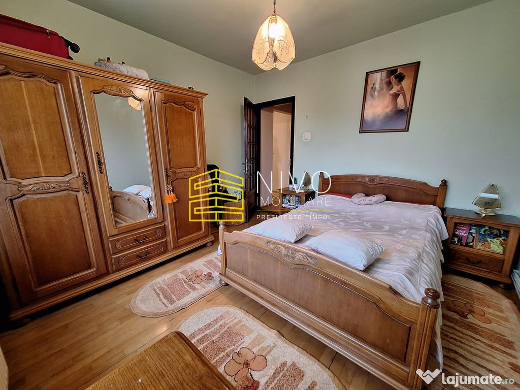 Este izolat termic, dotat cu centrală proprie, geamuri termopan, uși interioare noi și parchet din lemn masiv.