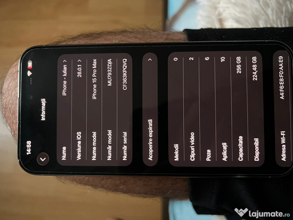 Vând iPhone 15 pro max folosit 1 an telefonul este în stare bună cum se vede și în poze bateria este ...