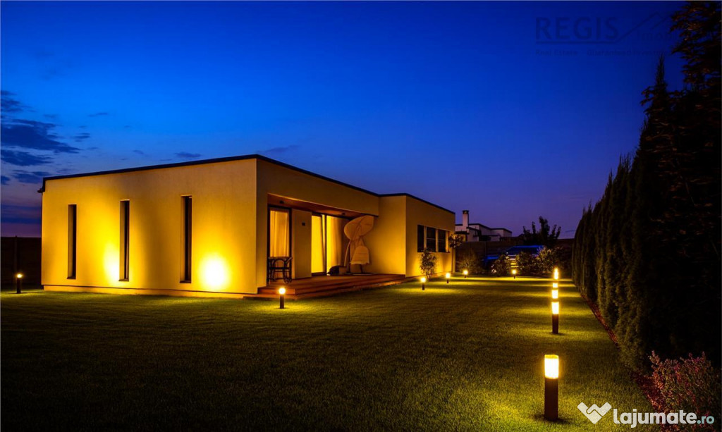 - Curte complet amenajata, cu gazon, pavaj si sistem de iluminat exterior