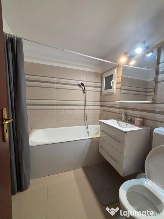 Apartamentul este complet mobilat si utilat, dispune de: 2 bai cu cada, renovat, termopan, AC, bucatarie utilata, etc.