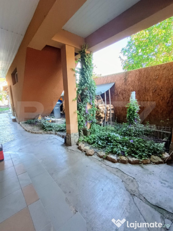 Curtea este betonata, acces auto si loc de parcare acoperit pentru 2 masini.