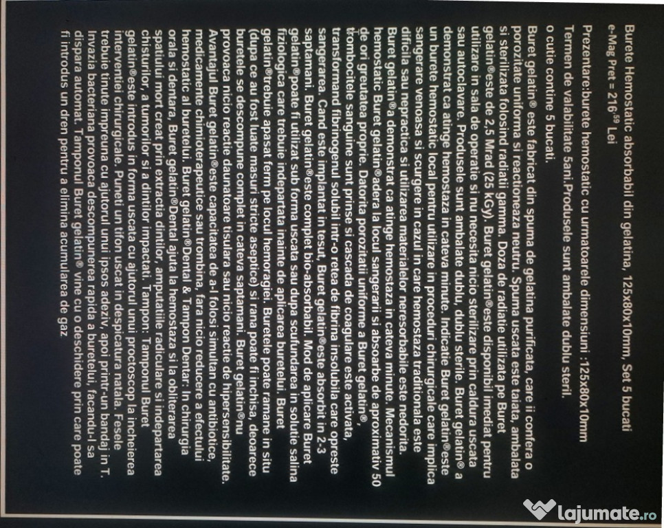 In present Buretii hemostatici Chirurgicali la eMAG.ro, au pretul (fara livrare) de 1) 148,83lei cutia de 10 buc 8x5(40cmp)x1cm pe care o vand cu 100 lei (cca 50% reducere) si 2) 216,59lei cutia de 5 buc 12,5x8(100cmp)x1cm pe care o vand cu 135 lei. Sunt in garantie.