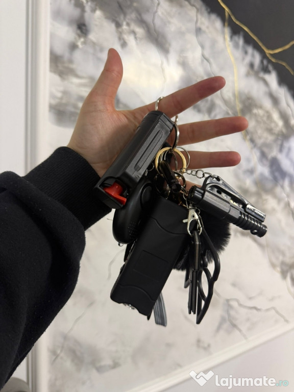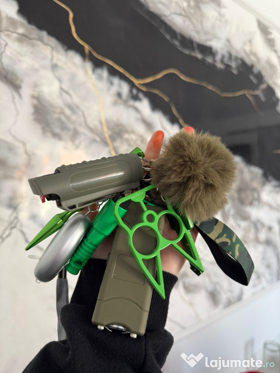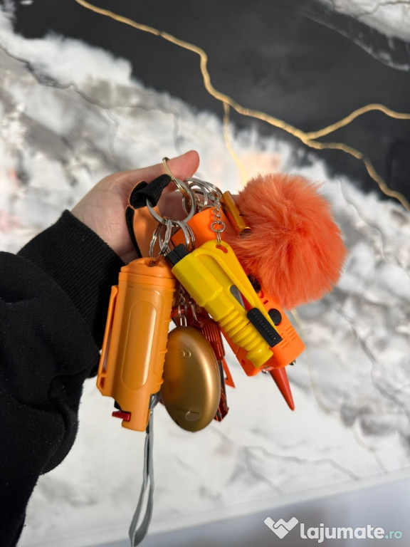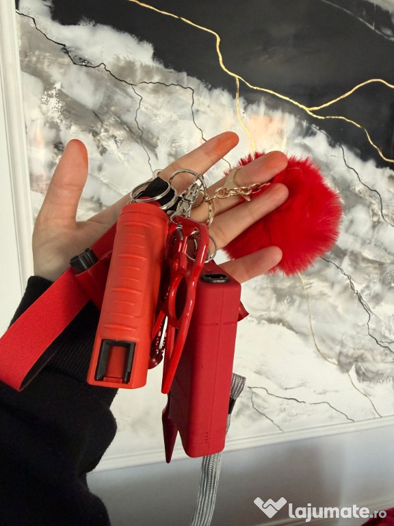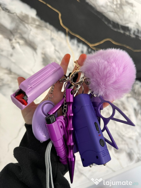 ???? Include accesorii utile – alarmă personală cu sunet puternic, mini lanternă LED, spray/țepușă de autoapărare etc.