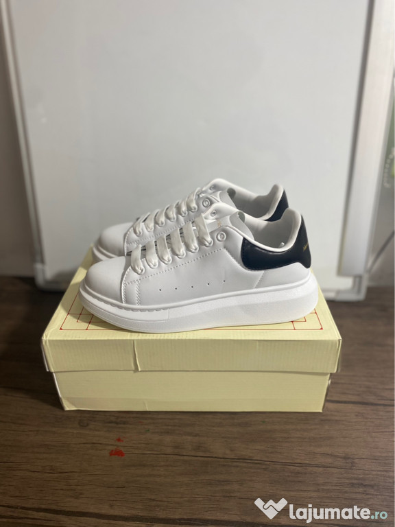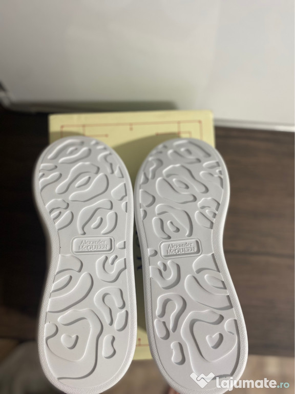 Vând o pereche de papuci Alexander McQueen albi cu detalii negre, mărimea 41, în stare nouă – nicioda ...