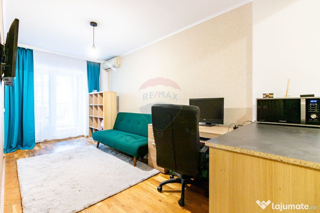 Garsonieră transformată în studio – spațioasă, luminoasă și excelent poziționatăVă propunem spre vânzare o garsonieră generoasă, cu o suprafață utilă de 39,60 mp, la care se adaugă o terasă de 9,78 mp, rezultând o suprafață totală de 49,38 mp.