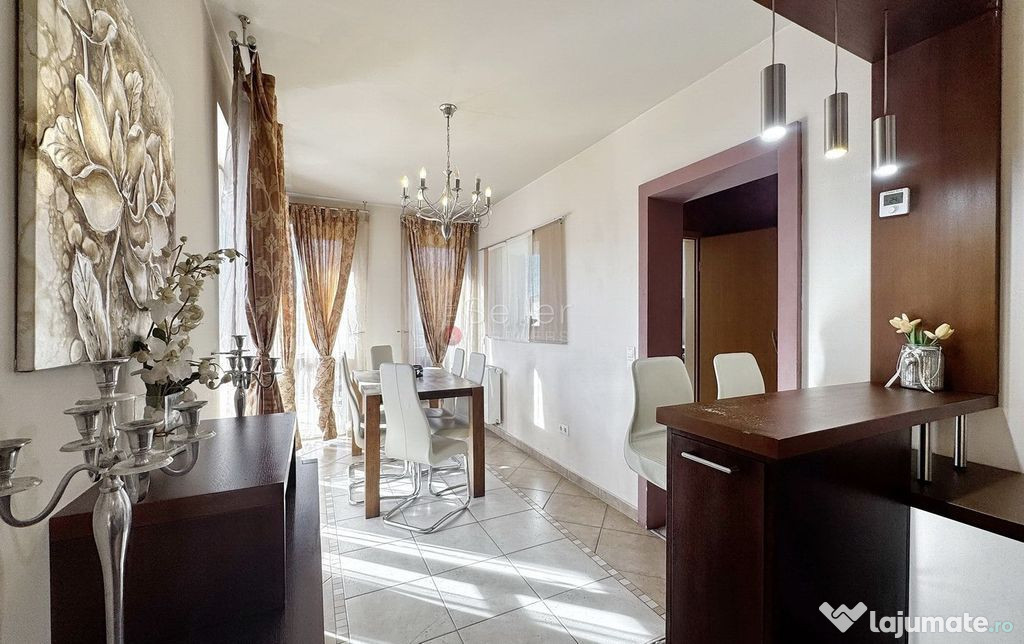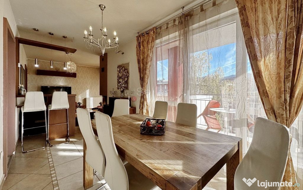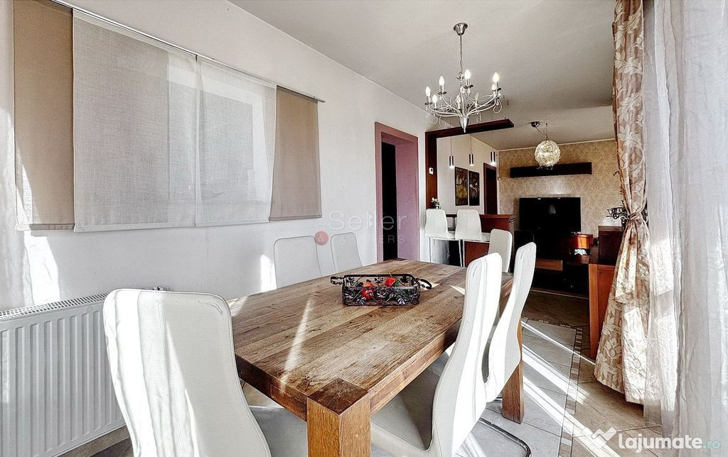 - Diningul este openspace cu zona de living si care comunica cu bucatarie prin geamul decupat;
