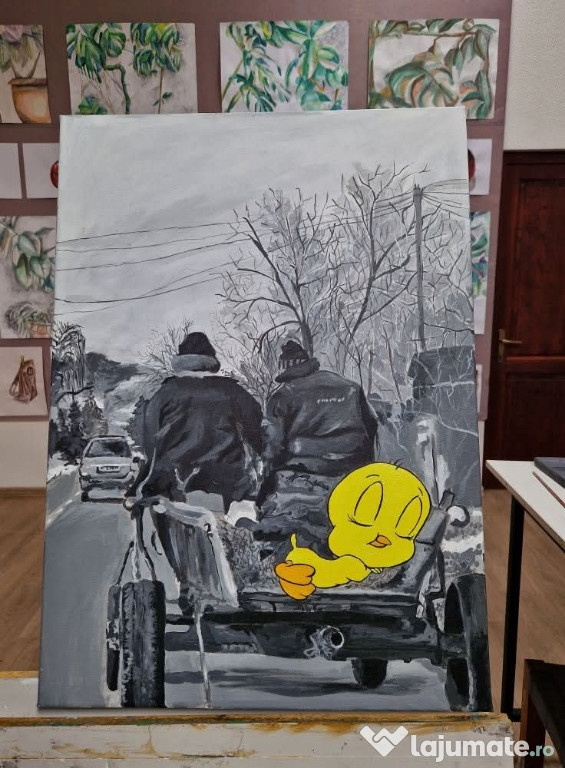 Buna! Realizez picturi si lucrări la comanda care se pot transforma intr un cadou unic si special. Pot aborda orice tehnica, dar cel mai mult am folosit: acrilic, creion, cărbune, acuarela, creioane colorate. Pot realiza cam orice iti poate trece prin cap, compoziții creative, portrete dar si sa reproduc poze. Preturile depind de format, dar si numărul de detalii. Am si cunoștințe in domeniu, dar care nu se opresc aici, încercând constant sa ma perfecționez si sa evoluez.Daca dorești mai multe detalii, te aștept în privat sau pe whatsapp!