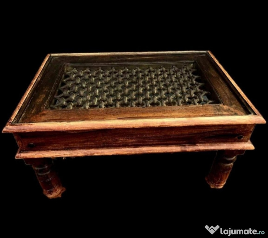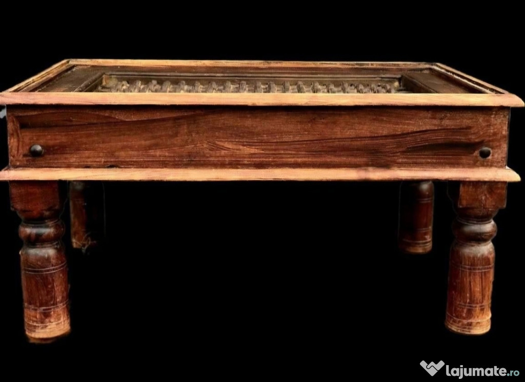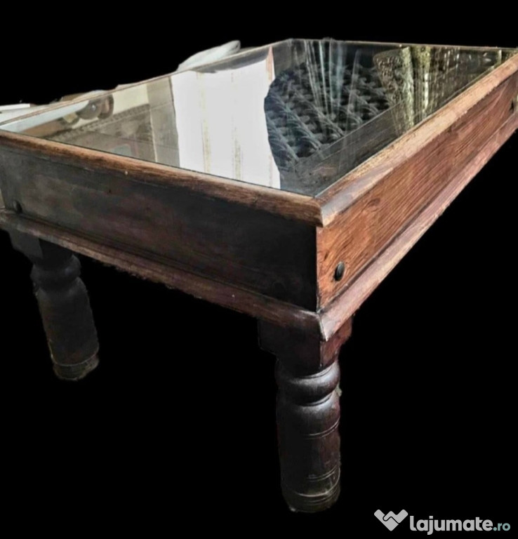 Piesa unica!Măsuță de cafea făcută dintr-un geam medieval