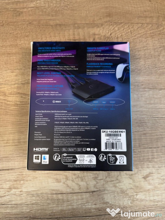 HDR 10-bit passthrough (până la 4K60) / HDR capture (până la 1080p60, doar pe Windows)